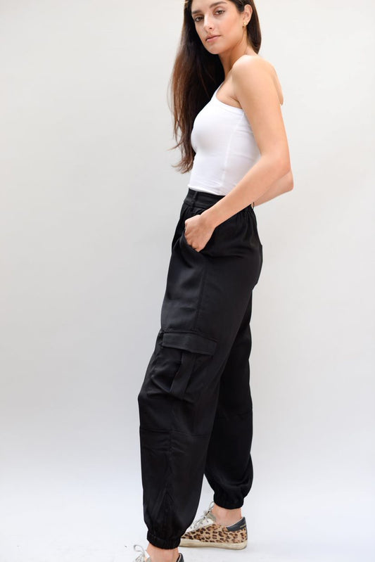 Sold outBlack Satin Effect Cargo Pants