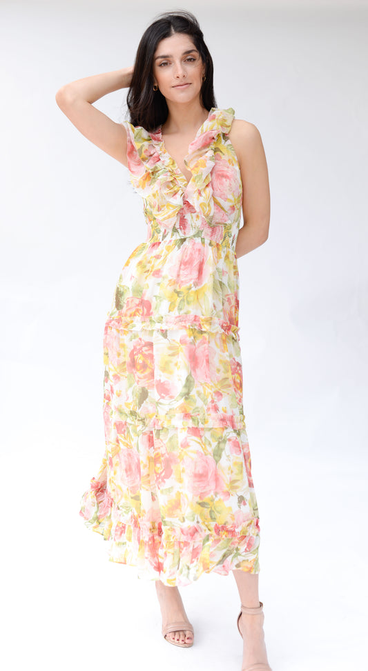 Sold outMaxi Long Dress Pink/Yellow Floral