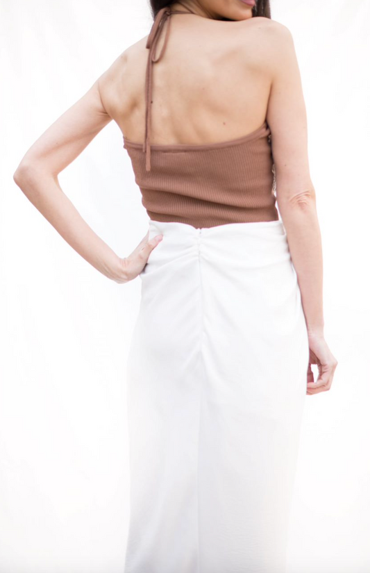 Sold outCream Halter Rib Knit Midi Dress