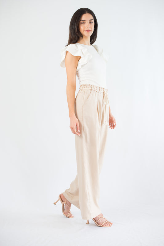 Sold outOff White Ribbed Ruffle Sleeve Top