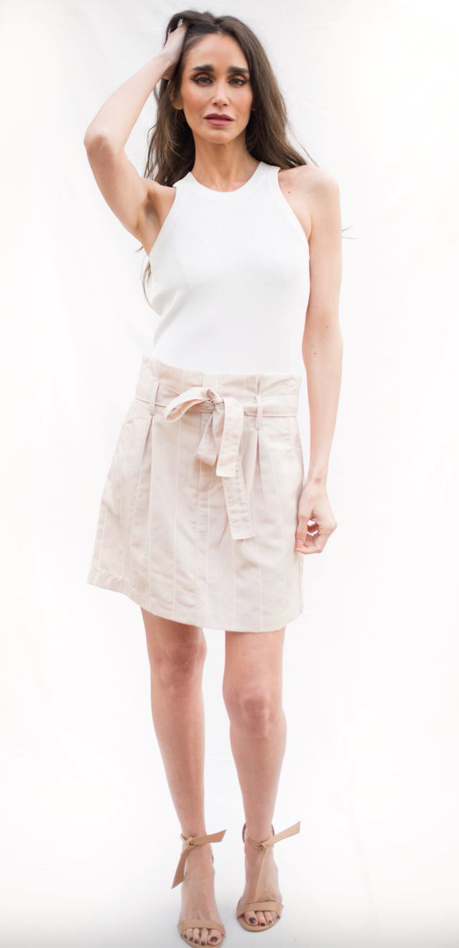 Bone Pleat Detail Paper Bag Mini Skirt Woven